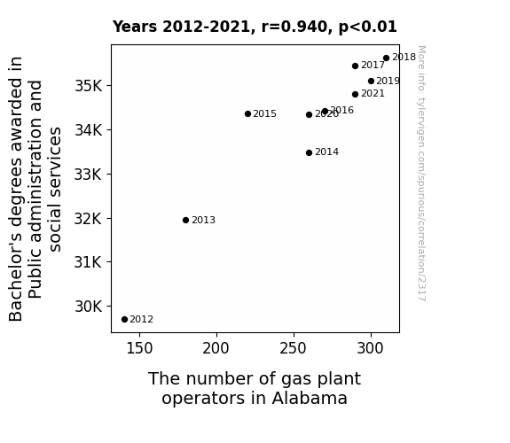 This is exacerbated by the fact that I used "Years" as the base variable. Lots of things happen in a year that are not related to each other! Most studies would use something like "one person" in stead of "one year" to be the "thing" studied. - Observations not independent: For many variables, sequential years are not independent of each other. You will often see trend-lines form. If a population of people is continuously doing something every day, there is no reason to think they would suddenly change how they are doing that thing on January 1. A naive p-value calculation does not take this into account.