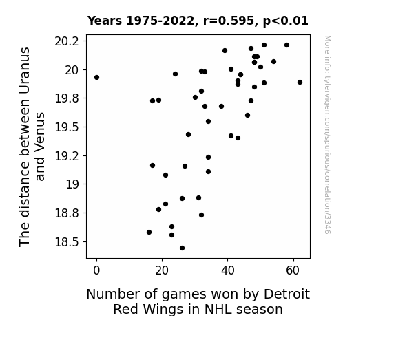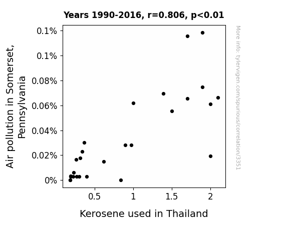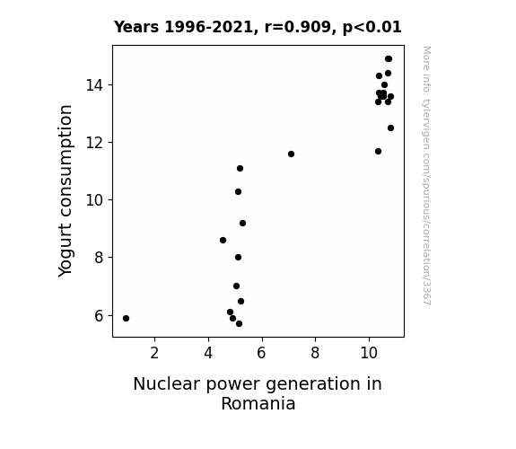 This is exacerbated by the fact that I used "Years" as the base variable. Lots of things happen in a year that are not related to each other! Most studies would use something like "one person" in stead of "one year" to be the "thing" studied. - Observations not independent: For many variables, sequential years are not independent of each other. You will often see trend-lines form. If a population of people is continuously doing something every day, there is no reason to think they would suddenly change how they are doing that thing on January 1. A naive p-value calculation does not take this into account.