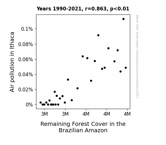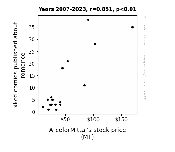 Instead of starting with a hypothesis and testing it, I isntead tossed a bunch of data in a blender to see what correlations would shake out. It’s a dangerous way to go about analysis, because any sufficiently large dataset will yield strong correlations completely at random. - Lack of causal connection: There is probably no direct connection between these variables, despite what the AI says above.