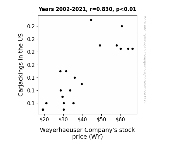 Instead of starting with a hypothesis and testing it, I isntead tossed a bunch of data in a blender to see what correlations would shake out. It’s a dangerous way to go about analysis, because any sufficiently large dataset will yield strong correlations completely at random. - Lack of causal connection: There is probably no direct connection between these variables, despite what the AI says above.