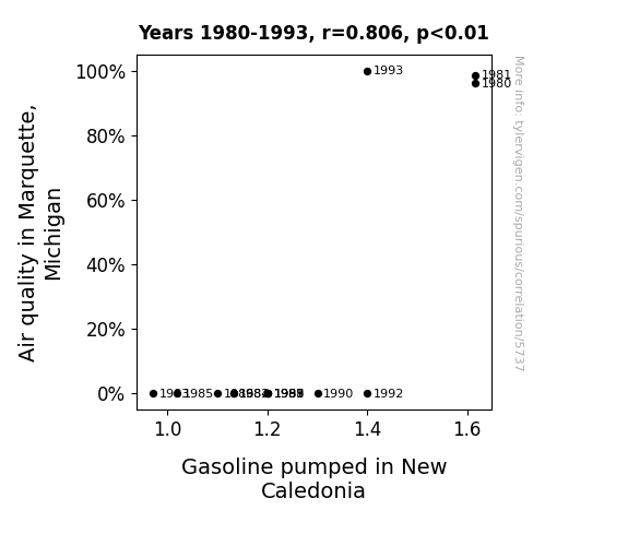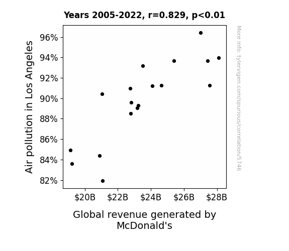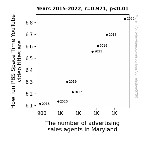 Instead of starting with a hypothesis and testing it, I isntead tossed a bunch of data in a blender to see what correlations would shake out. It’s a dangerous way to go about analysis, because any sufficiently large dataset will yield strong correlations completely at random. - Lack of causal connection: There is probably no direct connection between these variables, despite what the AI says above.