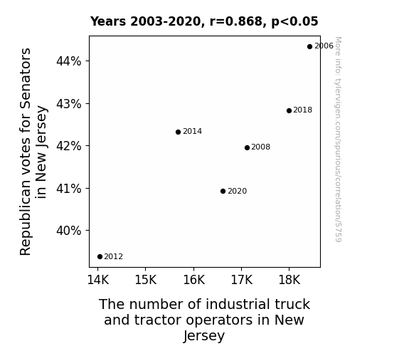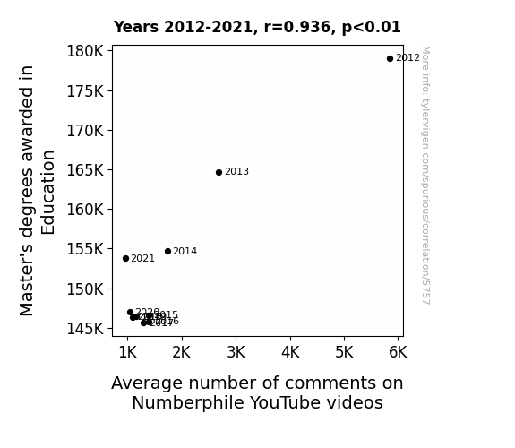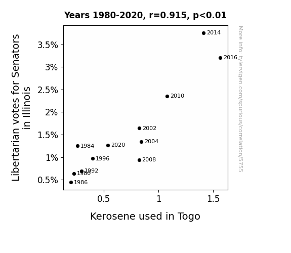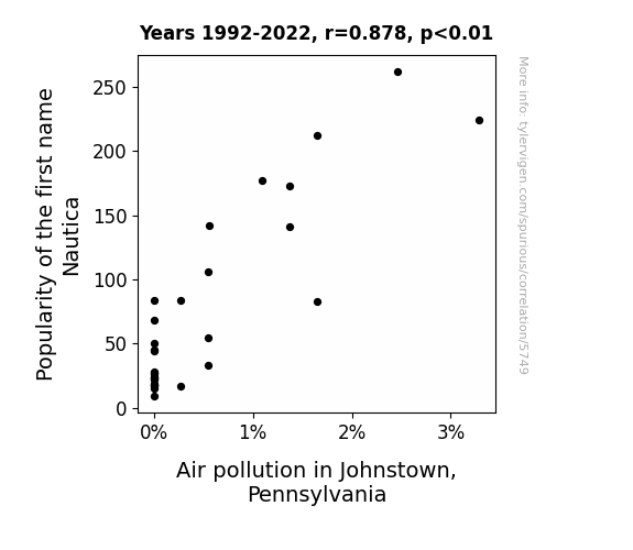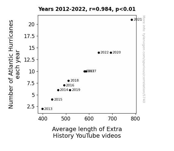 This is exacerbated by the fact that I used "Years" as the base variable. Lots of things happen in a year that are not related to each other! Most studies would use something like "one person" in stead of "one year" to be the "thing" studied. - Observations not independent: For many variables, sequential years are not independent of each other. You will often see trend-lines form. If a population of people is continuously doing something every day, there is no reason to think they would suddenly change how they are doing that thing on January 1. A naive p-value calculation does not take this into account.