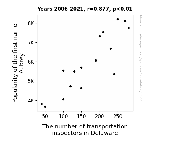 This is exacerbated by the fact that I used "Years" as the base variable. Lots of things happen in a year that are not related to each other! Most studies would use something like "one person" in stead of "one year" to be the "thing" studied. - Observations not independent: For many variables, sequential years are not independent of each other. You will often see trend-lines form. If a population of people is continuously doing something every day, there is no reason to think they would suddenly change how they are doing that thing on January 1. A naive p-value calculation does not take this into account.