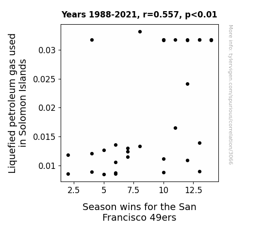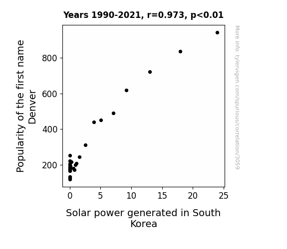 This is exacerbated by the fact that I used "Years" as the base variable. Lots of things happen in a year that are not related to each other! Most studies would use something like "one person" in stead of "one year" to be the "thing" studied. - Observations not independent: For many variables, sequential years are not independent of each other. You will often see trend-lines form. If a population of people is continuously doing something every day, there is no reason to think they would suddenly change how they are doing that thing on January 1. A naive p-value calculation does not take this into account.