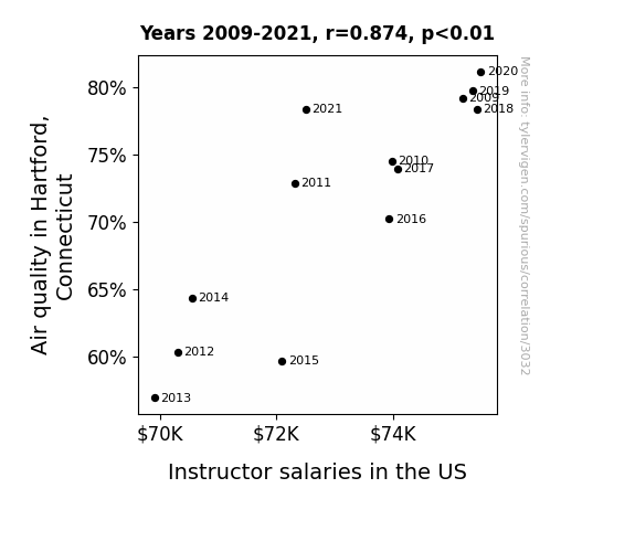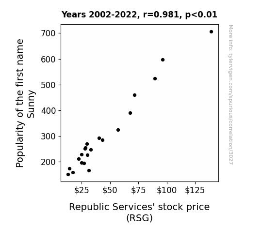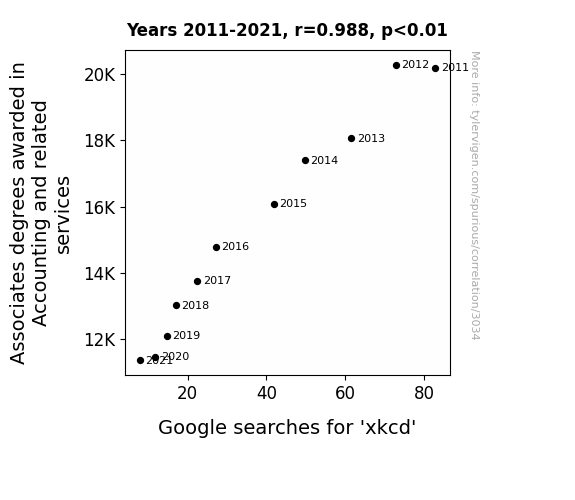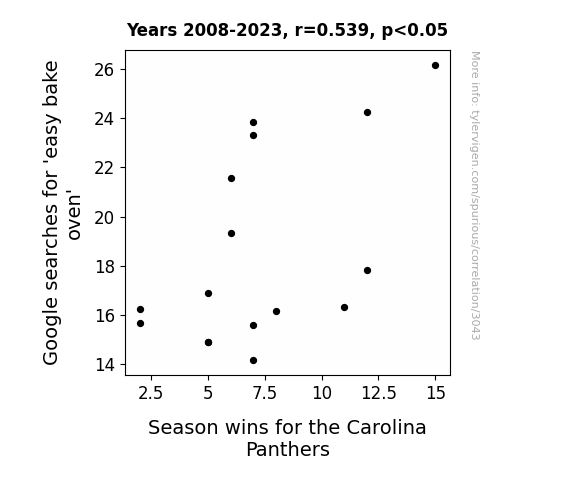 This is exacerbated by the fact that I used "Years" as the base variable. Lots of things happen in a year that are not related to each other! Most studies would use something like "one person" in stead of "one year" to be the "thing" studied. - Observations not independent: For many variables, sequential years are not independent of each other. You will often see trend-lines form. If a population of people is continuously doing something every day, there is no reason to think they would suddenly change how they are doing that thing on January 1. A naive p-value calculation does not take this into account.