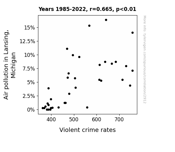 Instead of starting with a hypothesis and testing it, I isntead tossed a bunch of data in a blender to see what correlations would shake out. It’s a dangerous way to go about analysis, because any sufficiently large dataset will yield strong correlations completely at random. - Lack of causal connection: There is probably no direct connection between these variables, despite what the AI says above.
