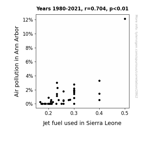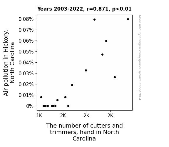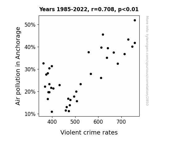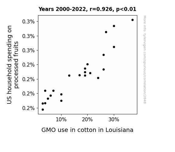 Instead of starting with a hypothesis and testing it, I isntead tossed a bunch of data in a blender to see what correlations would shake out. It’s a dangerous way to go about analysis, because any sufficiently large dataset will yield strong correlations completely at random. - Lack of causal connection: There is probably no direct connection between these variables, despite what the AI says above.