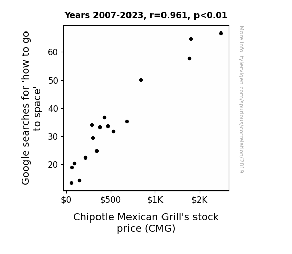 Instead of starting with a hypothesis and testing it, I isntead tossed a bunch of data in a blender to see what correlations would shake out. It’s a dangerous way to go about analysis, because any sufficiently large dataset will yield strong correlations completely at random. - Lack of causal connection: There is probably no direct connection between these variables, despite what the AI says above.