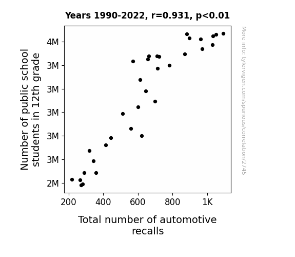 Instead of starting with a hypothesis and testing it, I isntead tossed a bunch of data in a blender to see what correlations would shake out. It’s a dangerous way to go about analysis, because any sufficiently large dataset will yield strong correlations completely at random. - Lack of causal connection: There is probably no direct connection between these variables, despite what the AI says above.