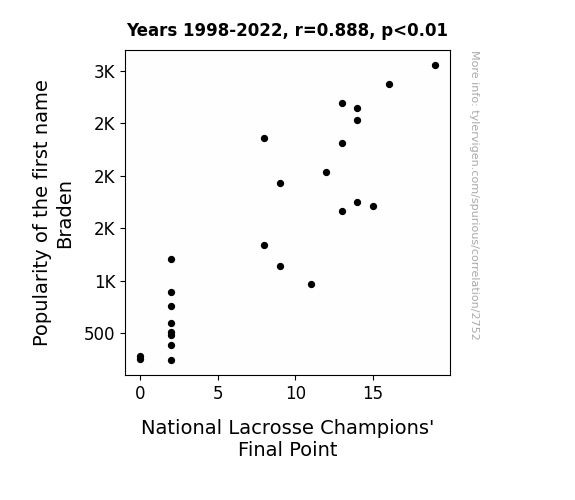 Spurious Scholar was launched January 27, 2024. If you have feedback on it, I'd love to hear from you! Shoot me a note: feedback@tylervigen.com.