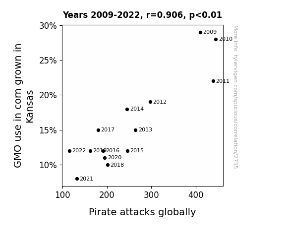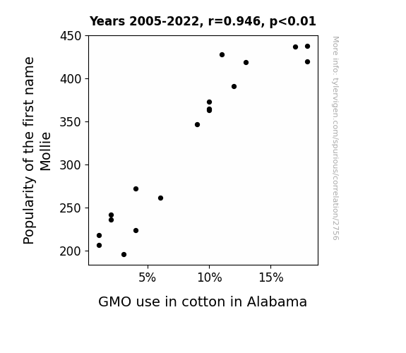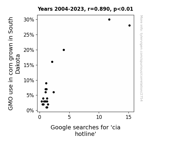 This is exacerbated by the fact that I used "Years" as the base variable. Lots of things happen in a year that are not related to each other! Most studies would use something like "one person" in stead of "one year" to be the "thing" studied. - Observations not independent: For many variables, sequential years are not independent of each other. You will often see trend-lines form. If a population of people is continuously doing something every day, there is no reason to think they would suddenly change how they are doing that thing on January 1. A naive p-value calculation does not take this into account.