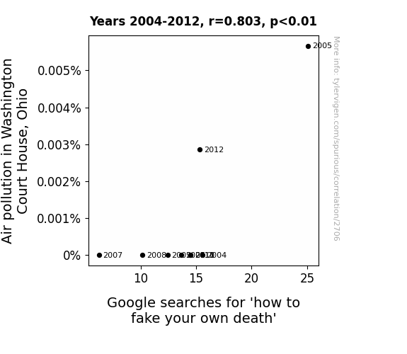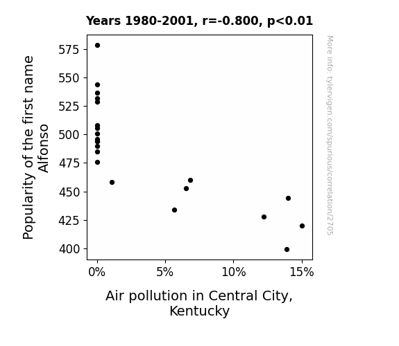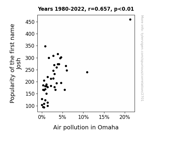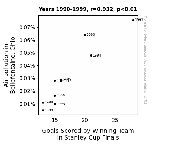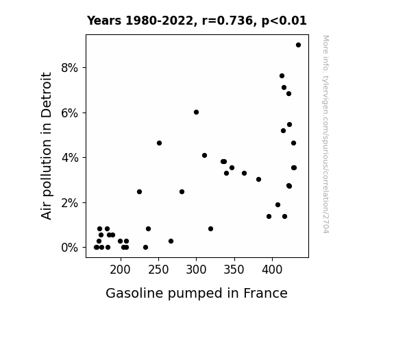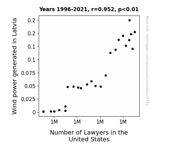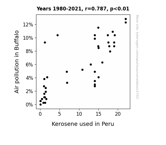 This is exacerbated by the fact that I used "Years" as the base variable. Lots of things happen in a year that are not related to each other! Most studies would use something like "one person" in stead of "one year" to be the "thing" studied. - Observations not independent: For many variables, sequential years are not independent of each other. You will often see trend-lines form. If a population of people is continuously doing something every day, there is no reason to think they would suddenly change how they are doing that thing on January 1. A naive p-value calculation does not take this into account.