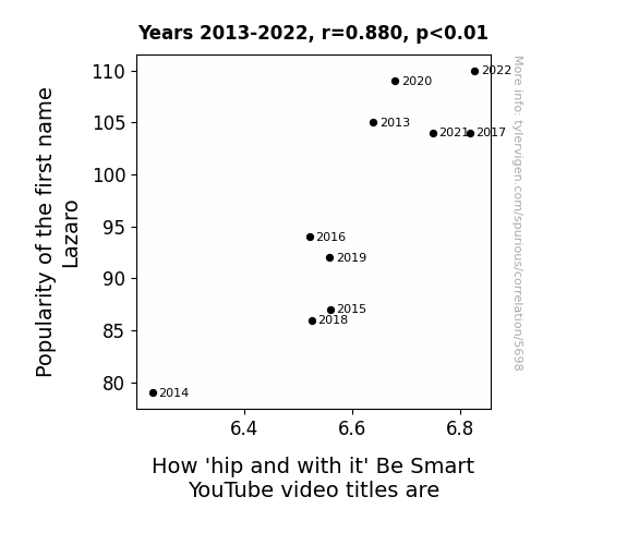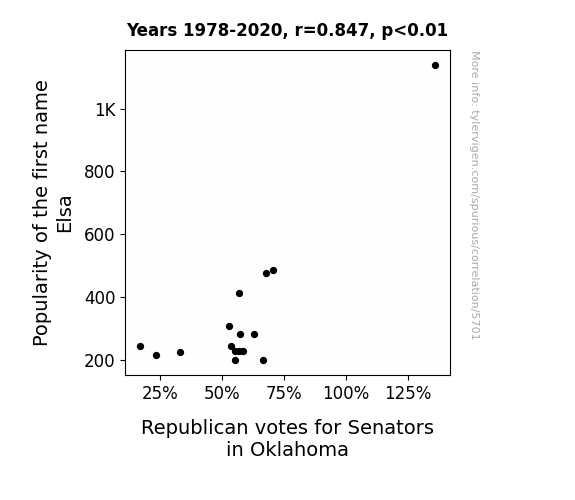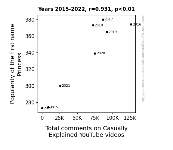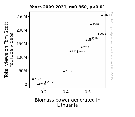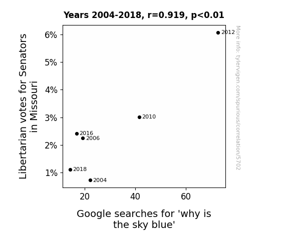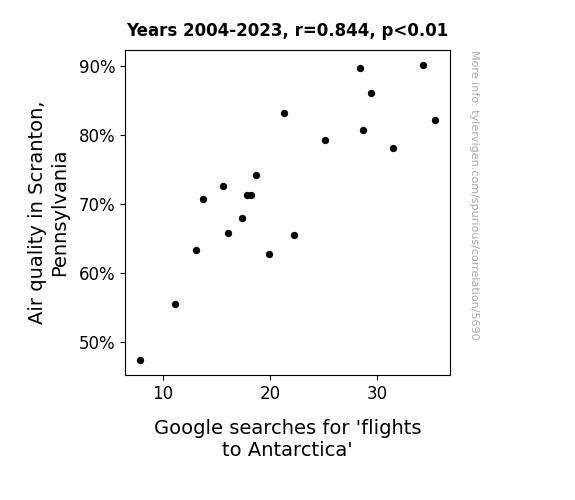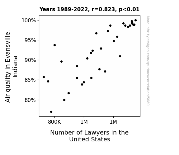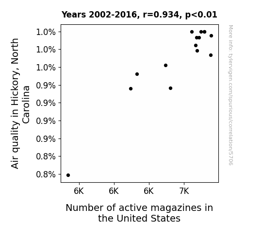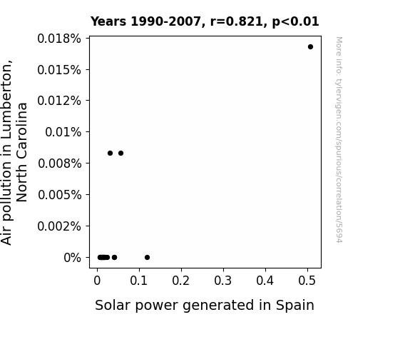 This is exacerbated by the fact that I used "Years" as the base variable. Lots of things happen in a year that are not related to each other! Most studies would use something like "one person" in stead of "one year" to be the "thing" studied. - Observations not independent: For many variables, sequential years are not independent of each other. You will often see trend-lines form. If a population of people is continuously doing something every day, there is no reason to think they would suddenly change how they are doing that thing on January 1. A naive p-value calculation does not take this into account.