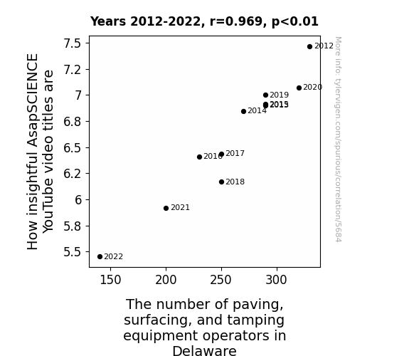 Instead of starting with a hypothesis and testing it, I isntead tossed a bunch of data in a blender to see what correlations would shake out. It’s a dangerous way to go about analysis, because any sufficiently large dataset will yield strong correlations completely at random. - Lack of causal connection: There is probably no direct connection between these variables, despite what the AI says above.