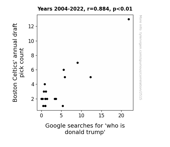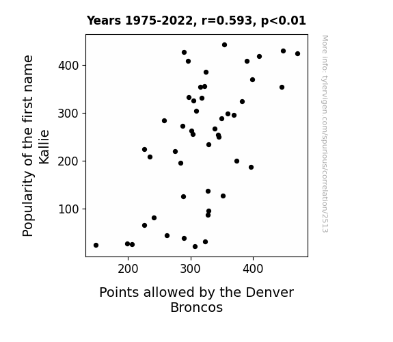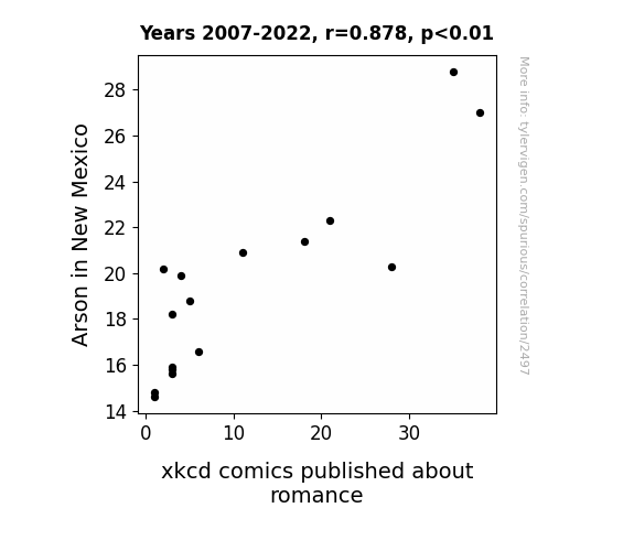 This is exacerbated by the fact that I used "Years" as the base variable. Lots of things happen in a year that are not related to each other! Most studies would use something like "one person" in stead of "one year" to be the "thing" studied. - Observations not independent: For many variables, sequential years are not independent of each other. You will often see trend-lines form. If a population of people is continuously doing something every day, there is no reason to think they would suddenly change how they are doing that thing on January 1. A naive p-value calculation does not take this into account.