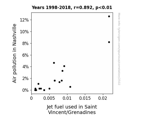 Instead of starting with a hypothesis and testing it, I isntead tossed a bunch of data in a blender to see what correlations would shake out. It’s a dangerous way to go about analysis, because any sufficiently large dataset will yield strong correlations completely at random. - Lack of causal connection: There is probably no direct connection between these variables, despite what the AI says above.