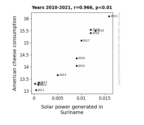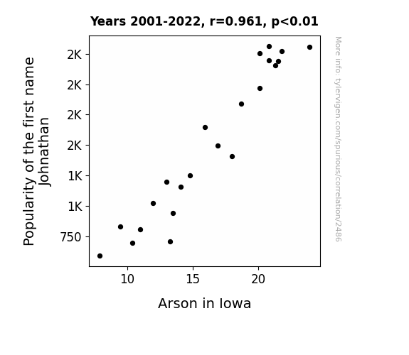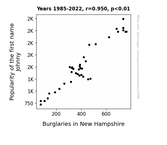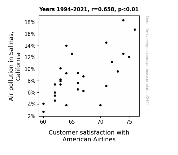This is exacerbated by the fact that I used "Years" as the base variable. Lots of things happen in a year that are not related to each other! Most studies would use something like "one person" in stead of "one year" to be the "thing" studied. - Observations not independent: For many variables, sequential years are not independent of each other. You will often see trend-lines form. If a population of people is continuously doing something every day, there is no reason to think they would suddenly change how they are doing that thing on January 1. A naive p-value calculation does not take this into account.