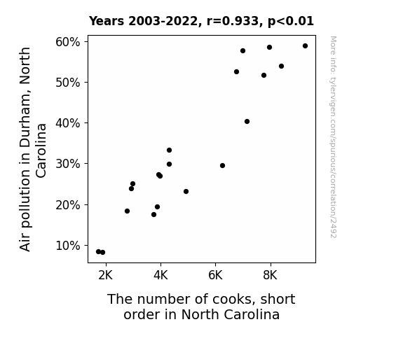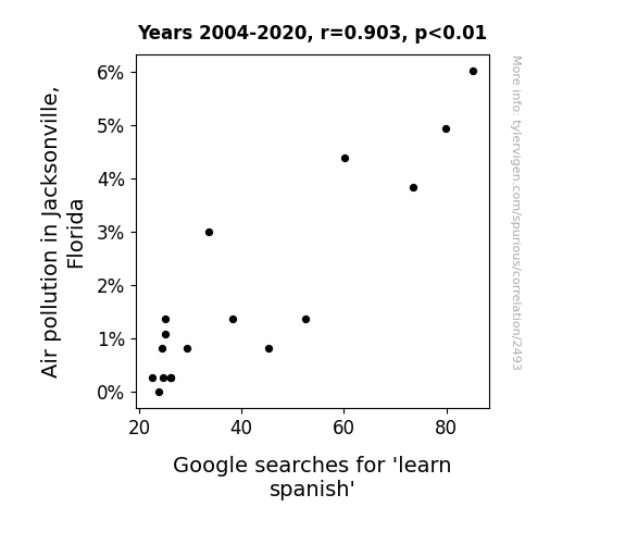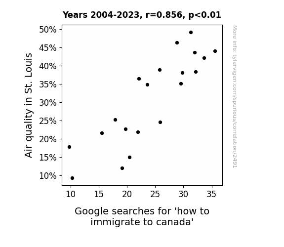 Instead of starting with a hypothesis and testing it, I isntead tossed a bunch of data in a blender to see what correlations would shake out. It’s a dangerous way to go about analysis, because any sufficiently large dataset will yield strong correlations completely at random. - Lack of causal connection: There is probably no direct connection between these variables, despite what the AI says above.