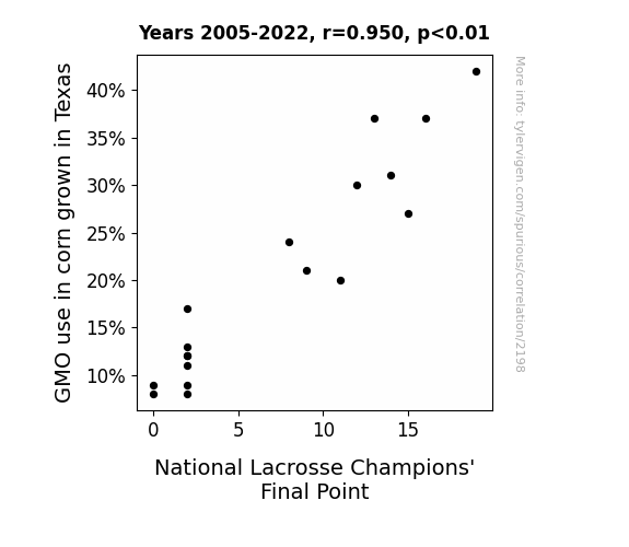 Instead of starting with a hypothesis and testing it, I isntead tossed a bunch of data in a blender to see what correlations would shake out. It’s a dangerous way to go about analysis, because any sufficiently large dataset will yield strong correlations completely at random. - Lack of causal connection: There is probably no direct connection between these variables, despite what the AI says above.