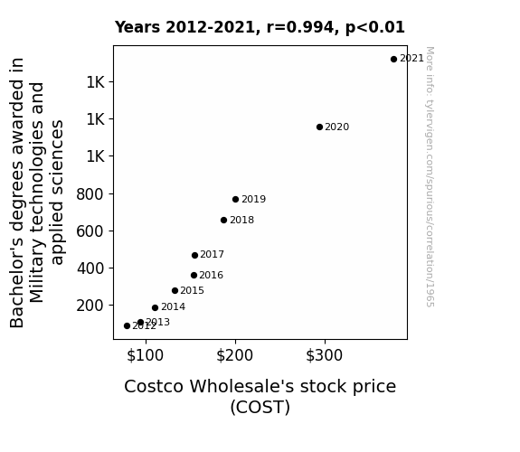 Instead of starting with a hypothesis and testing it, I isntead tossed a bunch of data in a blender to see what correlations would shake out. It’s a dangerous way to go about analysis, because any sufficiently large dataset will yield strong correlations completely at random. - Lack of causal connection: There is probably no direct connection between these variables, despite what the AI says above.