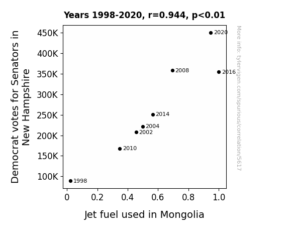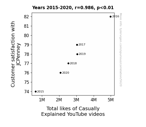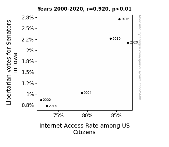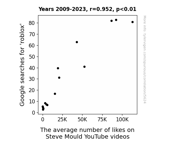 This is exacerbated by the fact that I used "Years" as the base variable. Lots of things happen in a year that are not related to each other! Most studies would use something like "one person" in stead of "one year" to be the "thing" studied. - Observations not independent: For many variables, sequential years are not independent of each other. You will often see trend-lines form. If a population of people is continuously doing something every day, there is no reason to think they would suddenly change how they are doing that thing on January 1. A naive p-value calculation does not take this into account.