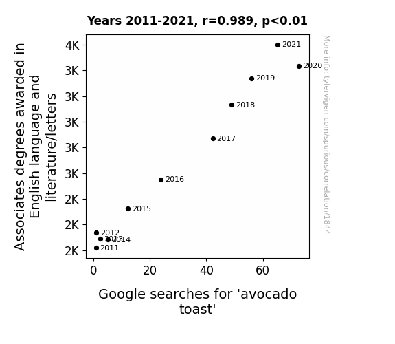 Instead of starting with a hypothesis and testing it, I isntead tossed a bunch of data in a blender to see what correlations would shake out. It’s a dangerous way to go about analysis, because any sufficiently large dataset will yield strong correlations completely at random. - Lack of causal connection: There is probably no direct connection between these variables, despite what the AI says above.