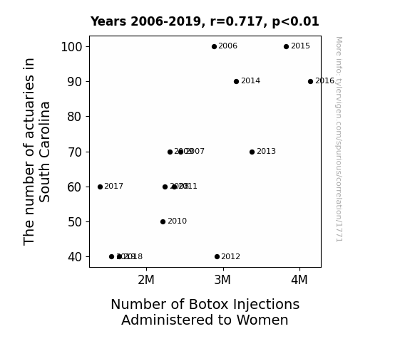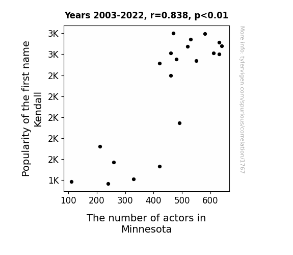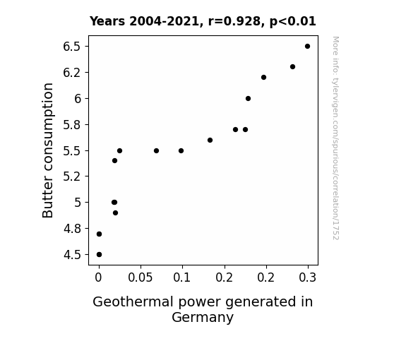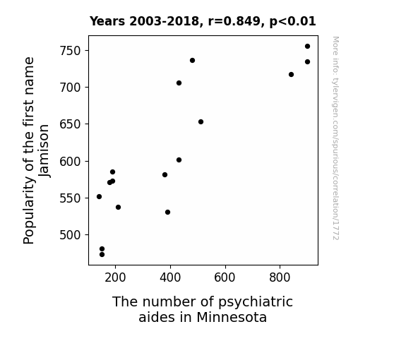 This is exacerbated by the fact that I used "Years" as the base variable. Lots of things happen in a year that are not related to each other! Most studies would use something like "one person" in stead of "one year" to be the "thing" studied. - Observations not independent: For many variables, sequential years are not independent of each other. You will often see trend-lines form. If a population of people is continuously doing something every day, there is no reason to think they would suddenly change how they are doing that thing on January 1. A naive p-value calculation does not take this into account.