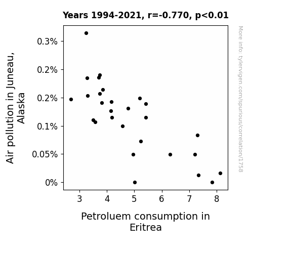 Instead of starting with a hypothesis and testing it, I isntead tossed a bunch of data in a blender to see what correlations would shake out. It’s a dangerous way to go about analysis, because any sufficiently large dataset will yield strong correlations completely at random. - Lack of causal connection: There is probably no direct connection between these variables, despite what the AI says above.