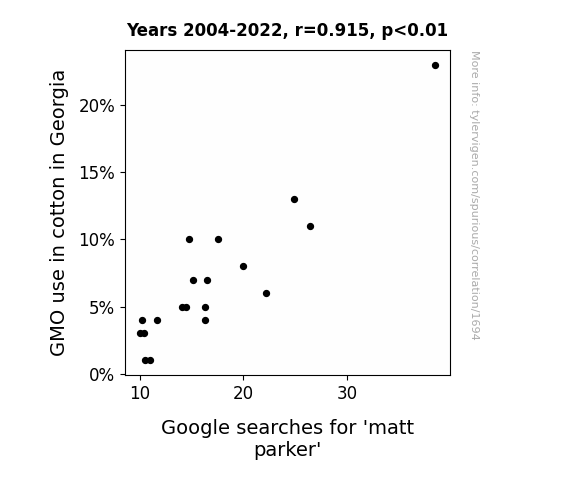 Spurious Scholar was launched January 27, 2024. If you have feedback on it, I'd love to hear from you! Shoot me a note: feedback@tylervigen.com.