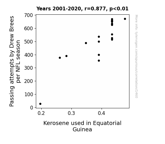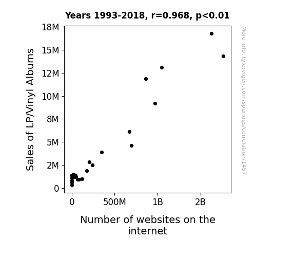 This is exacerbated by the fact that I used "Years" as the base variable. Lots of things happen in a year that are not related to each other! Most studies would use something like "one person" in stead of "one year" to be the "thing" studied. - Observations not independent: For many variables, sequential years are not independent of each other. You will often see trend-lines form. If a population of people is continuously doing something every day, there is no reason to think they would suddenly change how they are doing that thing on January 1. A naive p-value calculation does not take this into account.
