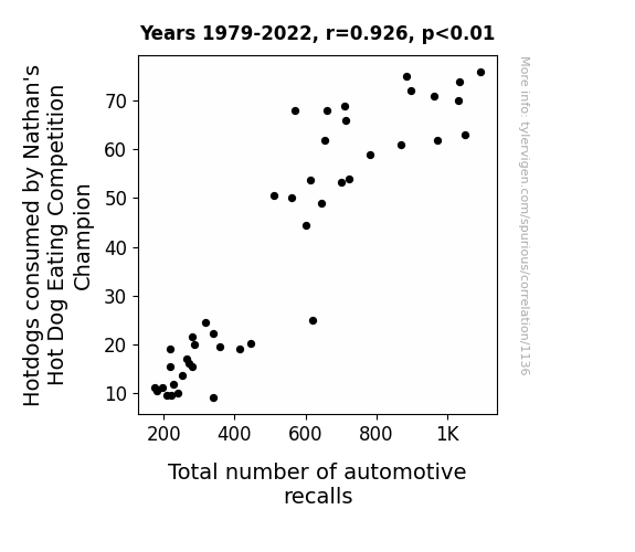 Step 1: Gather a bunch of data. There are 25,156 variables in my database. The data ranges from the mundane (air pollution in Chicago) to the weird (Hotdogs consumed by Nathan's Hot Dog Eating Competition Champion) to the super-niche (How clickbait-y Numberphile YouTube video titles are, as rated by an AI).