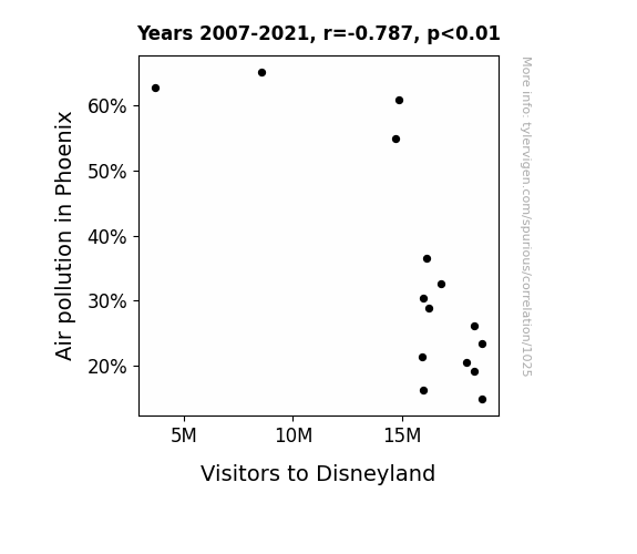 Instead of starting with a hypothesis and testing it, I isntead tossed a bunch of data in a blender to see what correlations would shake out. It’s a dangerous way to go about analysis, because any sufficiently large dataset will yield strong correlations completely at random. - Lack of causal connection: There is probably no direct connection between these variables, despite what the AI says above.