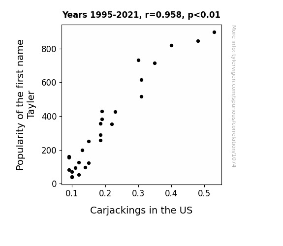 Spurious Scholar was launched January 27, 2024. If you have feedback on it, I'd love to hear from you! Shoot me a note: feedback@tylervigen.com.