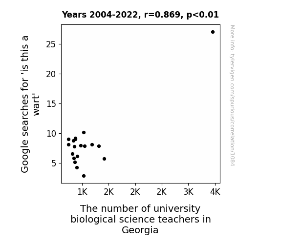 Instead of starting with a hypothesis and testing it, I isntead tossed a bunch of data in a blender to see what correlations would shake out. It’s a dangerous way to go about analysis, because any sufficiently large dataset will yield strong correlations completely at random. - Lack of causal connection: There is probably no direct connection between these variables, despite what the AI says above.