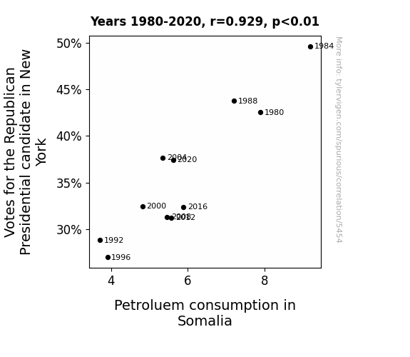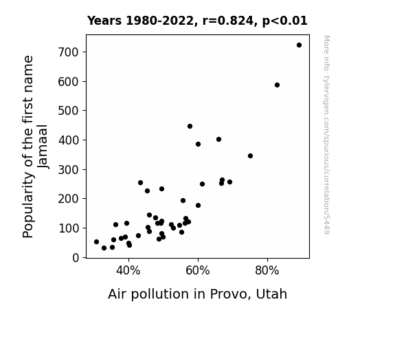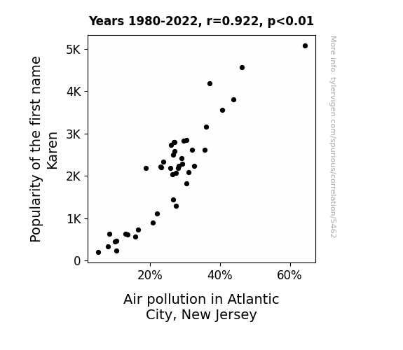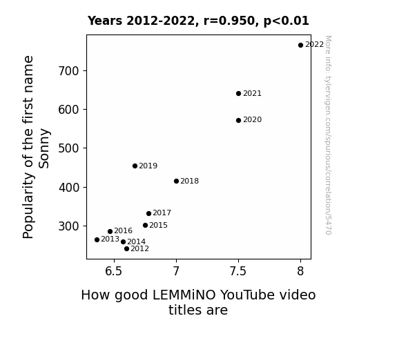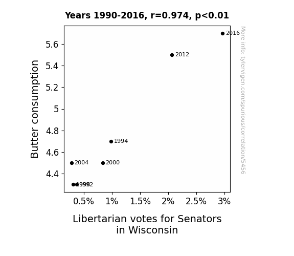 This is exacerbated by the fact that I used "Years" as the base variable. Lots of things happen in a year that are not related to each other! Most studies would use something like "one person" in stead of "one year" to be the "thing" studied. - Observations not independent: For many variables, sequential years are not independent of each other. You will often see trend-lines form. If a population of people is continuously doing something every day, there is no reason to think they would suddenly change how they are doing that thing on January 1. A naive p-value calculation does not take this into account.