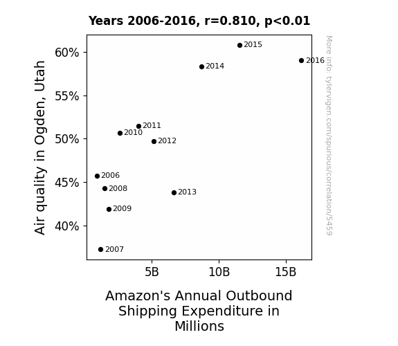 Instead of starting with a hypothesis and testing it, I isntead tossed a bunch of data in a blender to see what correlations would shake out. It’s a dangerous way to go about analysis, because any sufficiently large dataset will yield strong correlations completely at random. - Lack of causal connection: There is probably no direct connection between these variables, despite what the AI says above.