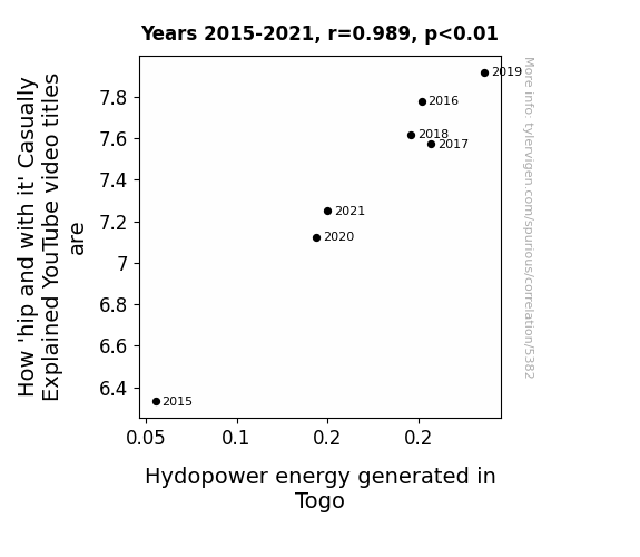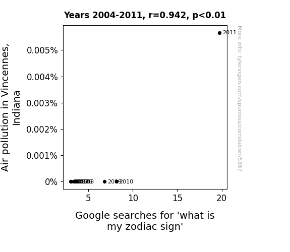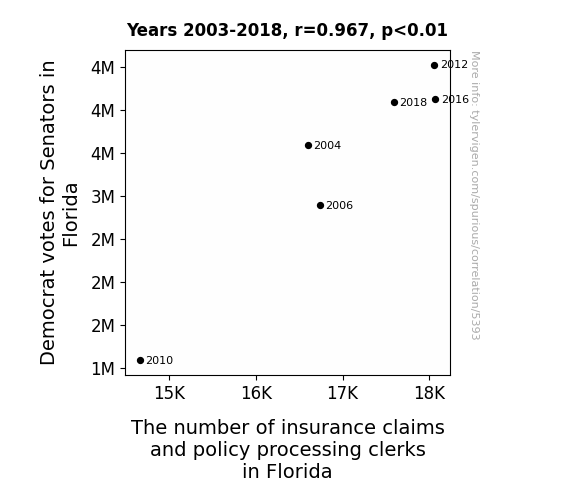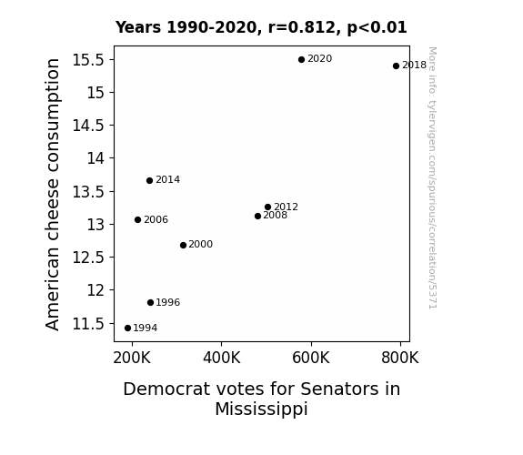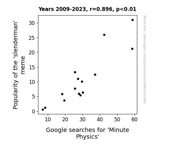 This is exacerbated by the fact that I used "Years" as the base variable. Lots of things happen in a year that are not related to each other! Most studies would use something like "one person" in stead of "one year" to be the "thing" studied. - Observations not independent: For many variables, sequential years are not independent of each other. You will often see trend-lines form. If a population of people is continuously doing something every day, there is no reason to think they would suddenly change how they are doing that thing on January 1. A naive p-value calculation does not take this into account.