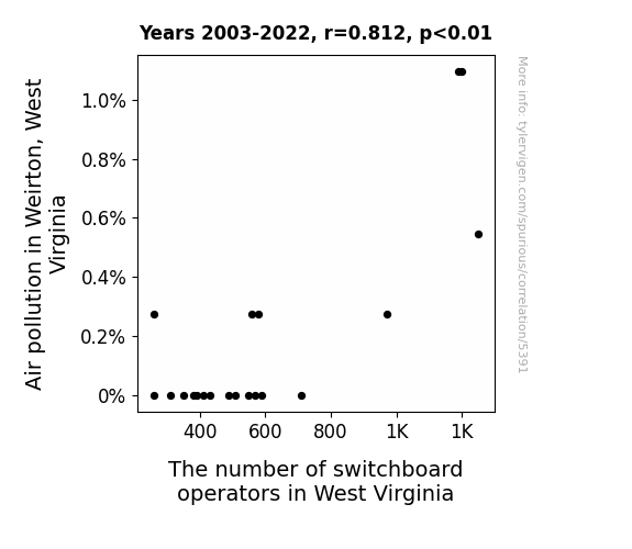 Instead of starting with a hypothesis and testing it, I isntead tossed a bunch of data in a blender to see what correlations would shake out. It’s a dangerous way to go about analysis, because any sufficiently large dataset will yield strong correlations completely at random. - Lack of causal connection: There is probably no direct connection between these variables, despite what the AI says above.