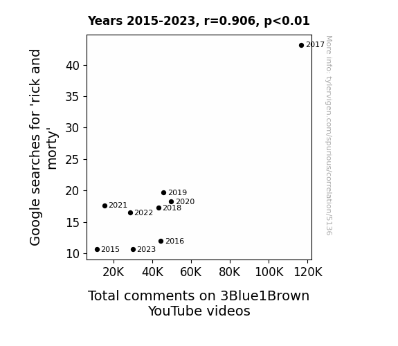 Instead of starting with a hypothesis and testing it, I isntead tossed a bunch of data in a blender to see what correlations would shake out. It’s a dangerous way to go about analysis, because any sufficiently large dataset will yield strong correlations completely at random. - Lack of causal connection: There is probably no direct connection between these variables, despite what the AI says above.