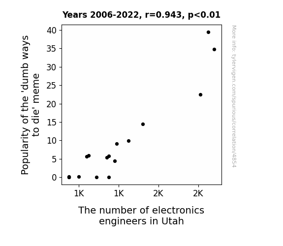 Instead of starting with a hypothesis and testing it, I isntead tossed a bunch of data in a blender to see what correlations would shake out. It’s a dangerous way to go about analysis, because any sufficiently large dataset will yield strong correlations completely at random. - Lack of causal connection: There is probably no direct connection between these variables, despite what the AI says above.