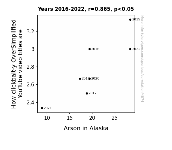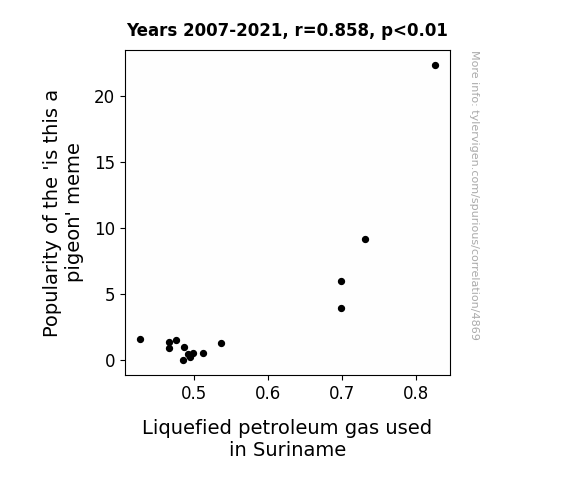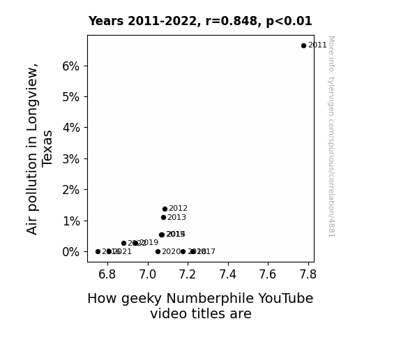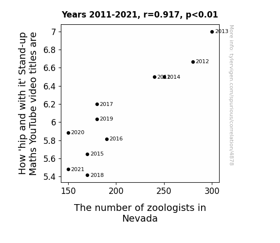 This is exacerbated by the fact that I used "Years" as the base variable. Lots of things happen in a year that are not related to each other! Most studies would use something like "one person" in stead of "one year" to be the "thing" studied. - Observations not independent: For many variables, sequential years are not independent of each other. You will often see trend-lines form. If a population of people is continuously doing something every day, there is no reason to think they would suddenly change how they are doing that thing on January 1. A naive p-value calculation does not take this into account.