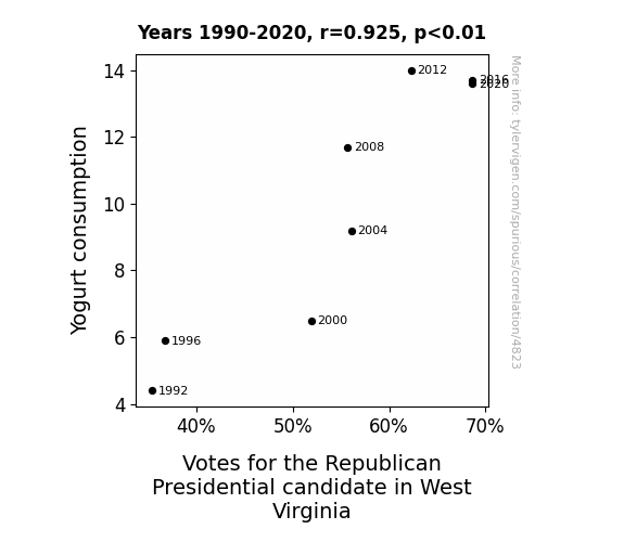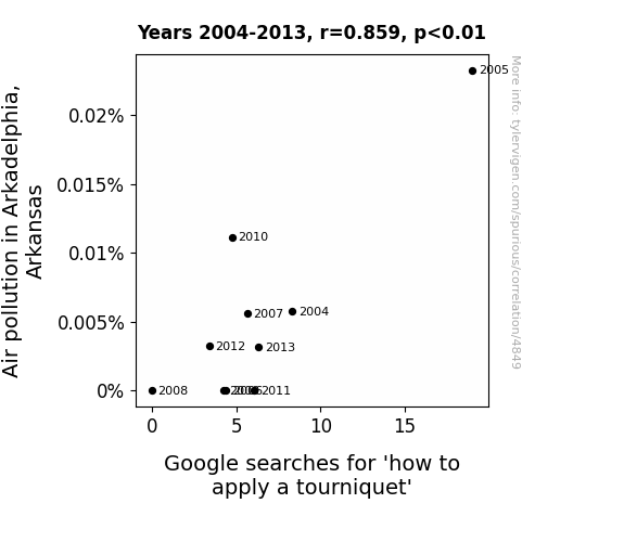 This is exacerbated by the fact that I used "Years" as the base variable. Lots of things happen in a year that are not related to each other! Most studies would use something like "one person" in stead of "one year" to be the "thing" studied. - Observations not independent: For many variables, sequential years are not independent of each other. You will often see trend-lines form. If a population of people is continuously doing something every day, there is no reason to think they would suddenly change how they are doing that thing on January 1. A naive p-value calculation does not take this into account.