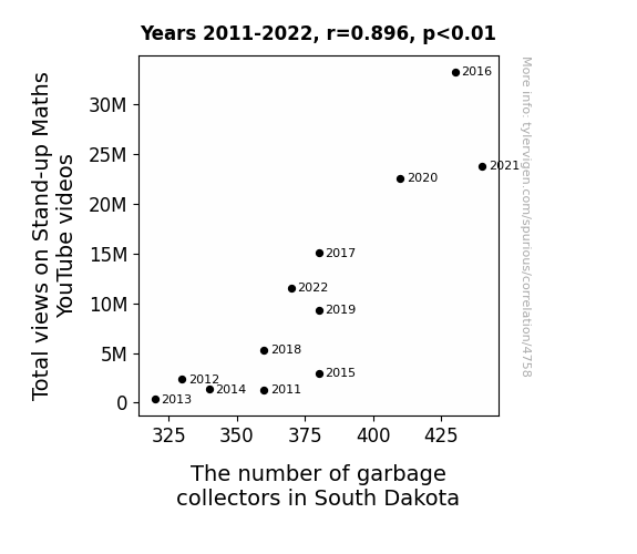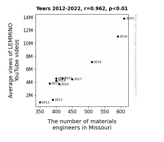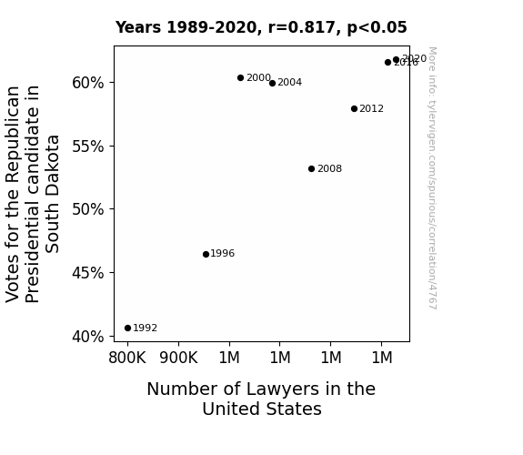 This is exacerbated by the fact that I used "Years" as the base variable. Lots of things happen in a year that are not related to each other! Most studies would use something like "one person" in stead of "one year" to be the "thing" studied. - Observations not independent: For many variables, sequential years are not independent of each other. You will often see trend-lines form. If a population of people is continuously doing something every day, there is no reason to think they would suddenly change how they are doing that thing on January 1. A naive p-value calculation does not take this into account.