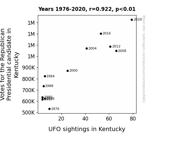 This is exacerbated by the fact that I used "Years" as the base variable. Lots of things happen in a year that are not related to each other! Most studies would use something like "one person" in stead of "one year" to be the "thing" studied. - Observations not independent: For many variables, sequential years are not independent of each other. You will often see trend-lines form. If a population of people is continuously doing something every day, there is no reason to think they would suddenly change how they are doing that thing on January 1. A naive p-value calculation does not take this into account.