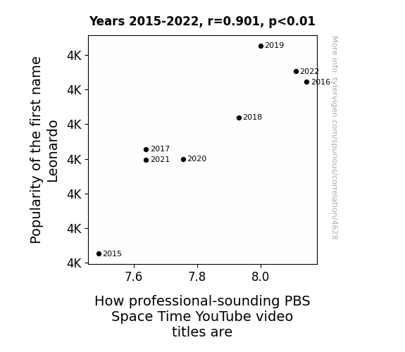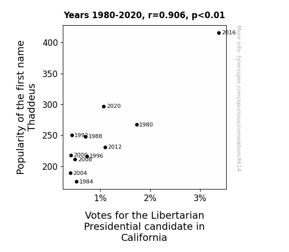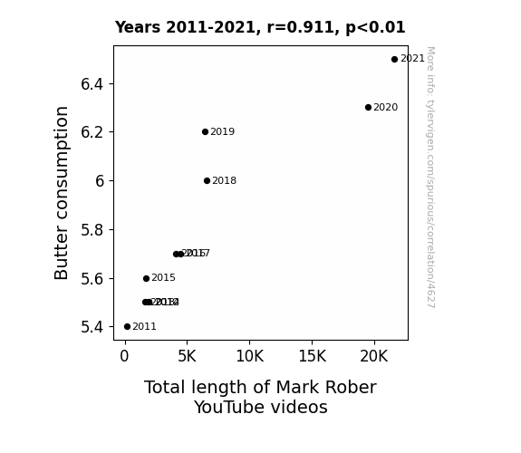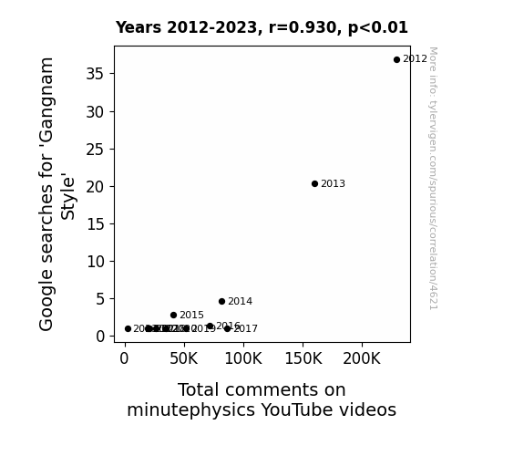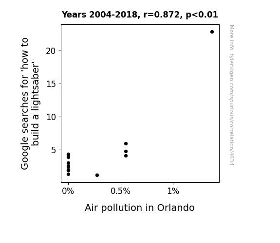 This is exacerbated by the fact that I used "Years" as the base variable. Lots of things happen in a year that are not related to each other! Most studies would use something like "one person" in stead of "one year" to be the "thing" studied. - Observations not independent: For many variables, sequential years are not independent of each other. You will often see trend-lines form. If a population of people is continuously doing something every day, there is no reason to think they would suddenly change how they are doing that thing on January 1. A naive p-value calculation does not take this into account.