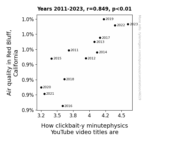 Instead of starting with a hypothesis and testing it, I isntead tossed a bunch of data in a blender to see what correlations would shake out. It’s a dangerous way to go about analysis, because any sufficiently large dataset will yield strong correlations completely at random. - Lack of causal connection: There is probably no direct connection between these variables, despite what the AI says above.