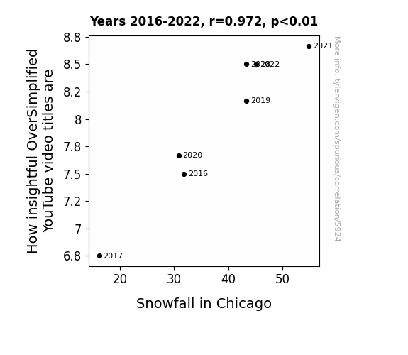 This is exacerbated by the fact that I used "Years" as the base variable. Lots of things happen in a year that are not related to each other! Most studies would use something like "one person" in stead of "one year" to be the "thing" studied. - Observations not independent: For many variables, sequential years are not independent of each other. You will often see trend-lines form. If a population of people is continuously doing something every day, there is no reason to think they would suddenly change how they are doing that thing on January 1. A naive p-value calculation does not take this into account.