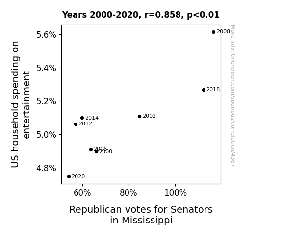 Instead of starting with a hypothesis and testing it, I isntead tossed a bunch of data in a blender to see what correlations would shake out. It’s a dangerous way to go about analysis, because any sufficiently large dataset will yield strong correlations completely at random. - Lack of causal connection: There is probably no direct connection between these variables, despite what the AI says above.
