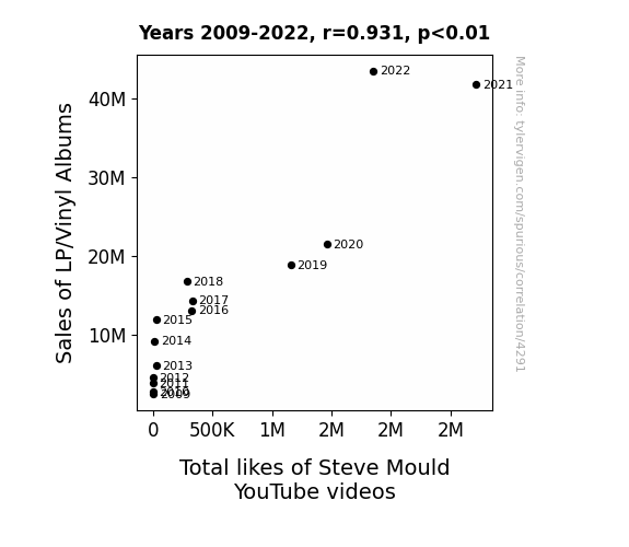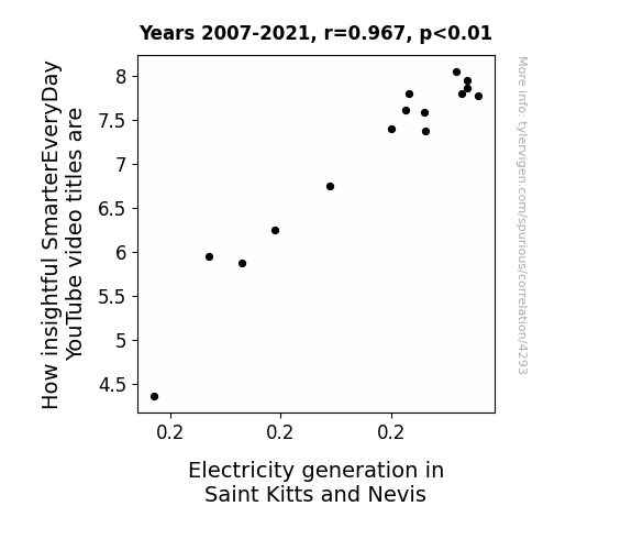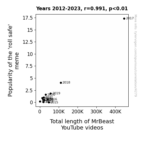 This is exacerbated by the fact that I used "Years" as the base variable. Lots of things happen in a year that are not related to each other! Most studies would use something like "one person" in stead of "one year" to be the "thing" studied. - Observations not independent: For many variables, sequential years are not independent of each other. You will often see trend-lines form. If a population of people is continuously doing something every day, there is no reason to think they would suddenly change how they are doing that thing on January 1. A naive p-value calculation does not take this into account.