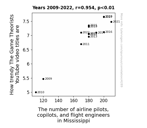 Instead of starting with a hypothesis and testing it, I isntead tossed a bunch of data in a blender to see what correlations would shake out. It’s a dangerous way to go about analysis, because any sufficiently large dataset will yield strong correlations completely at random. - Lack of causal connection: There is probably no direct connection between these variables, despite what the AI says above.